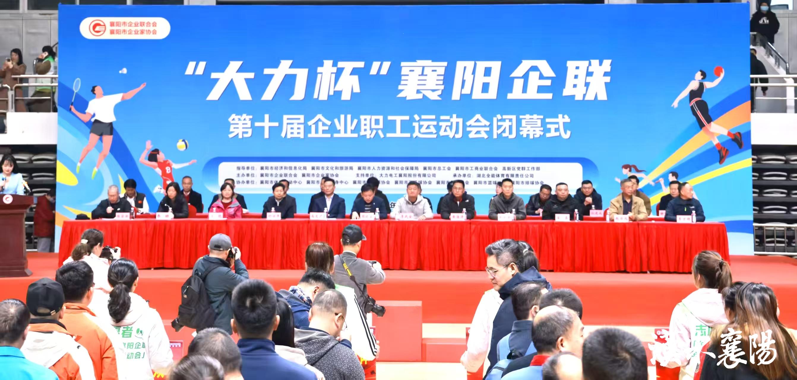 12月7日,历时2个月的“大力杯”襄阳企联第十届企业职工运动会在襄阳市体育馆举办闭幕式,赛事吸引了近150家企业3500名企业职工参赛,东风康明斯获得团体第一; 大力电工、航宇救生装备、襄南农工贸第二;江山重工、襄阳供电、襄阳新兴精密、风神襄阳获得第三,当天还同时进行了广播体操和篮球决赛,为运动会奉献了最为精彩的一幕。