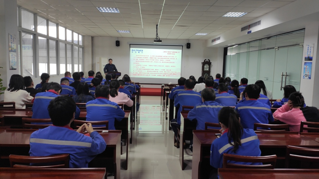 会议最后,大力电工党委书记余志金分享了赴上海交大参加高质量产业链党建工作培训学习体会心得。余书记从产业链党建工作的重要性、新业态新就业群体党建工作的内涵、路径、经验及实地参观上海市长宁区党建工作阵地等多方面向全体党员同志们做了阐述分享。他强调,作为一名党员同志,我们要从思想上、行动上提高自身素养,紧跟时代步伐,经常学习,不忘初心,时刻与党组织保持思想高度一致,立足本职工作,工作目标任务清晰,为党旗增辉,为企业增效,以实际行动践行一名党员同志的义务。