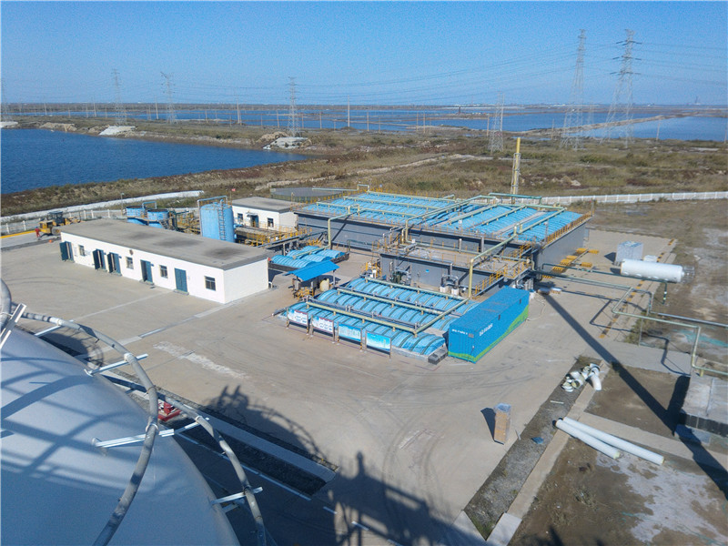 本项目位于山东东营某石油化工厂,工厂产生废水水量为1500吨/天,通过气浮、酸化水解、A/O池、二沉池等处理,将COD从1000mg/L以上降低到50mg/L以下,从而达标排放。